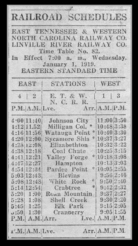 Charles Grover (Cy) Crumley was born in 1885 in Elizabethton, Tennessee. He spent 54 years of his life, from 1906 until 1960, working on the East Tennessee & Western North Carolina Railroad as a brakeman and conductor. He was the conductor of the daily passenger train from Johnson City to Boone for many, many, years. Mr. Crumley was my good friend from my childhood until his death in 1978. I spent many hours with him listening to his tales of his railroad days and looking over his three massive scrapbooks filled with photographs, timetables, and ET&WNC goodies. We were great buddies and later I had the sad duty of being one of his pallbearers. He is buried at Happy Valley Memorial Park in Carter County, Tennessee. After Mr. Crumley passed on I stayed in touch with his baby daughter, Ruth Tupper. She had been her Poppa’s caregiver and constant companion for the last fifteen years or so of his life and she was such a delightful girl. The presentation of these photographs would not be possible without her help. One of the last things that Mr. Crumley did before he passed on was to get with Ruth and try to rearrange the scrapbooks. Unfortunately, many of his items had been taken by “railroad historians” and never returned to him so the later scrapbooks were probably only about half of what they had been in the 1960’s, before the "borrowers" found out how free of heart Mr. Crumley was and stripped the collection. Many of the photographs that have been published in recent years under other names were taken from the Cy Crumley collection by the people who have their names on them now. All is not lost, however. Ruth Tupper passed away in 2003. Before she died, she allowed me to have the remains of the collection to make sure that they would be around for anyone who would like to see them after she was gone. The collection is now in the Archives of Appalachia at ETSU, and now will be available for everybody to see online at Johnson’s Depot.com. This would please Mr. Crumley and Ruth a great deal to know that everybody could see his photographs and hear the story of this great, great, railroad. Plus, even more good news....... I recently found a group of negatives that I shot about 1972-1973 among my scrap pile. Evidently, I took photographic copies of the scrapbooks, page by page, at that time. While they are still not what they were in 1965, they are about twice what is there today and I am working through these page by page and all the results will be both in the Archives of Appalachia and online here. So, light yourself a cigar and sit back and enjoy ol’ Cy’s pictures. He would be tickled to death for you to see them. Feel free to copy them, BUT—AND I MEAN IT—IF YOU PUBLISH THEM YOU BE SURE AND PUT MR. CY CRUMLEY’S NAME ON IT!